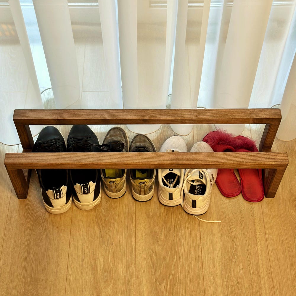 Wooden shoe shelf, handmade from natural wood, durable storage for shoes, compact, eco-friendly, perfect for entryway or closet