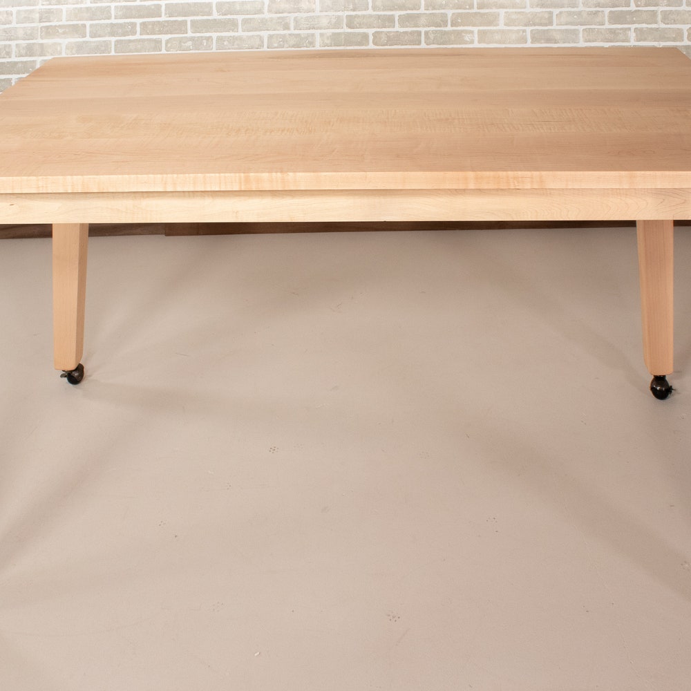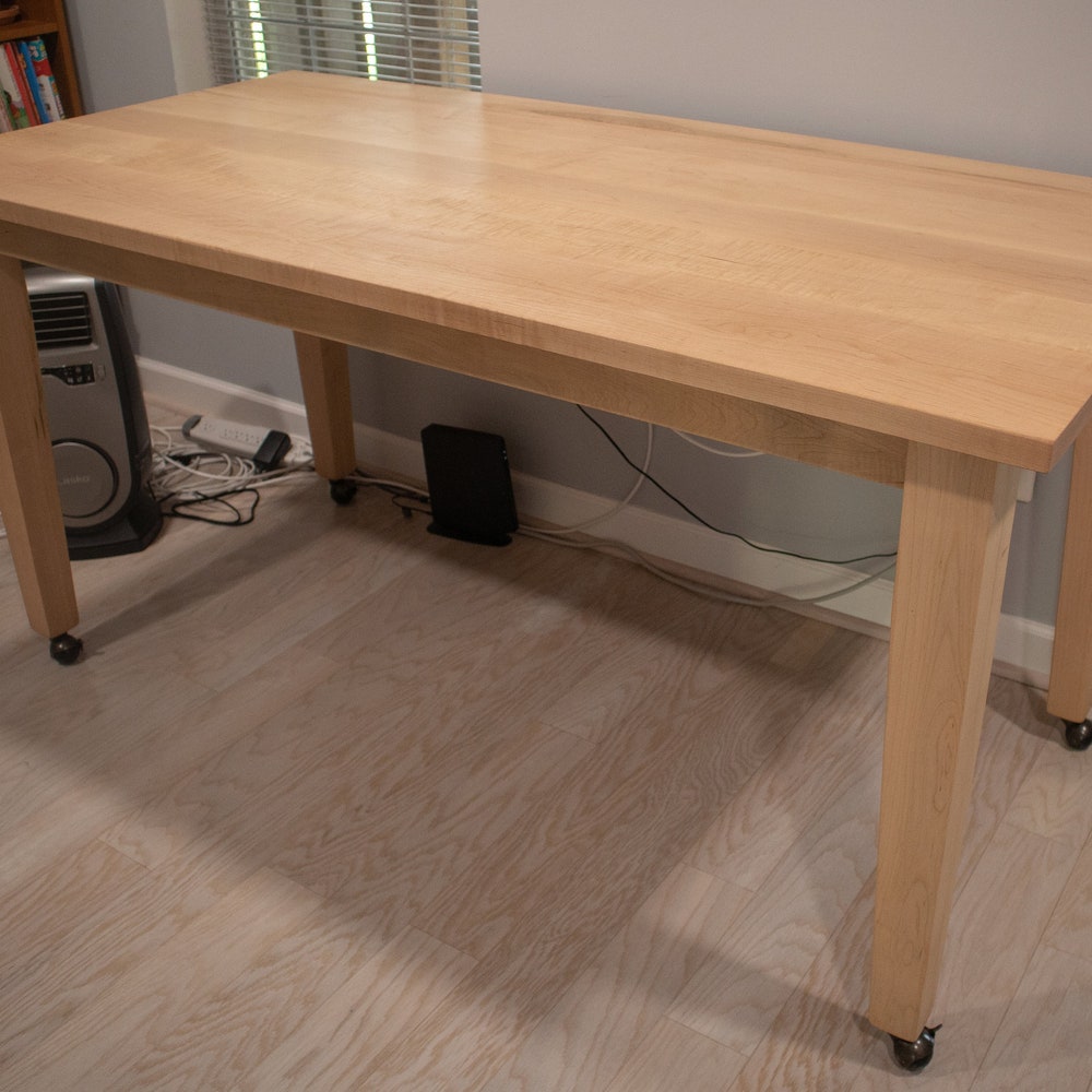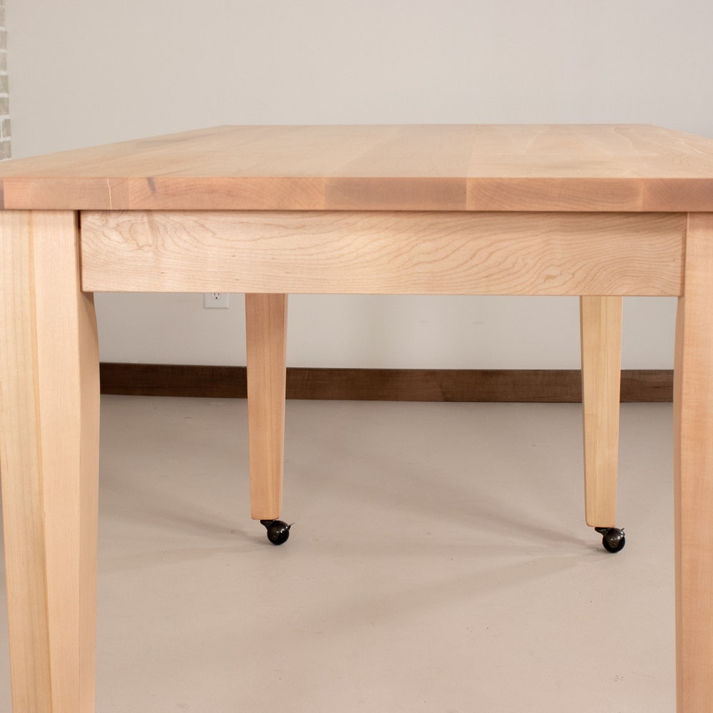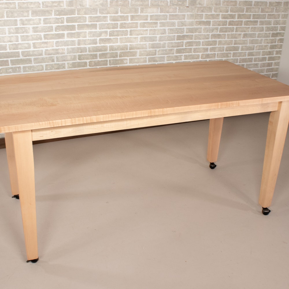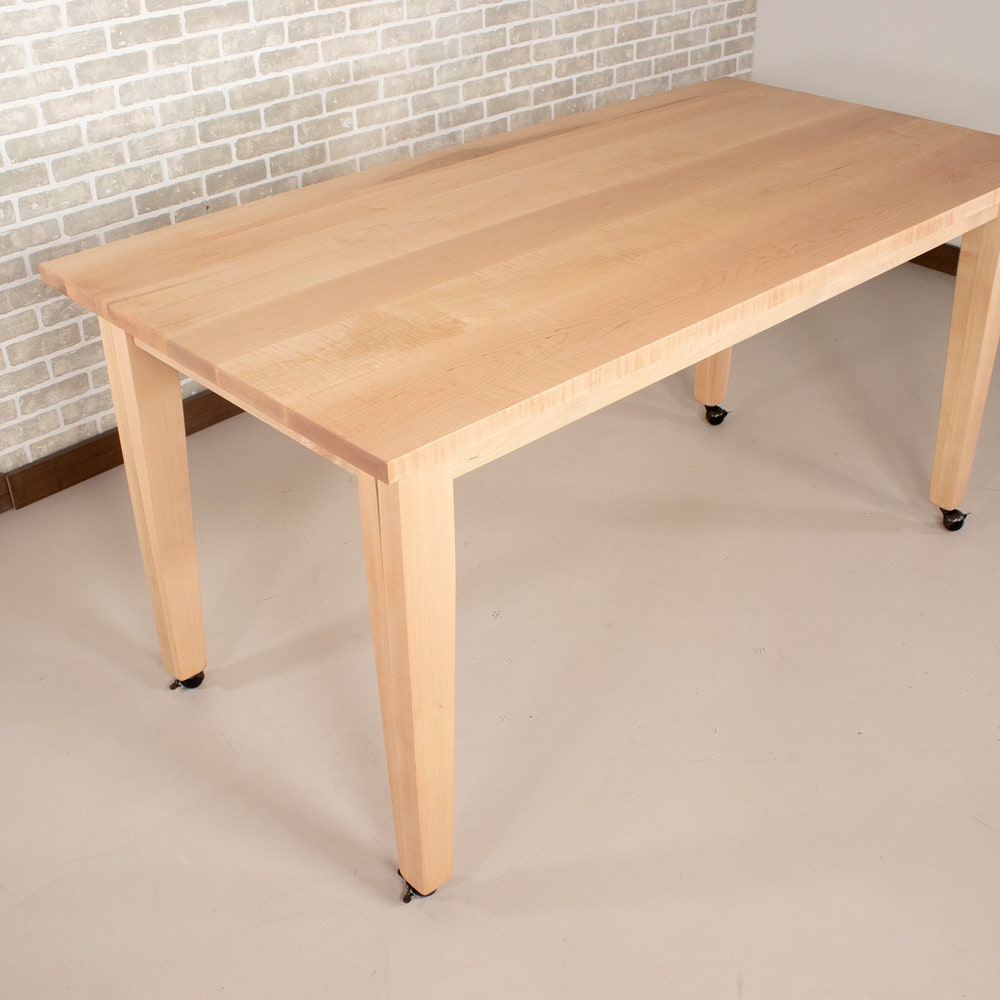Wooden Table with Wheels, Crafting Table on Wheels, Counter Height Maple Parsons Table on Castors, Maple Crafts Table, Rolling Craft Table