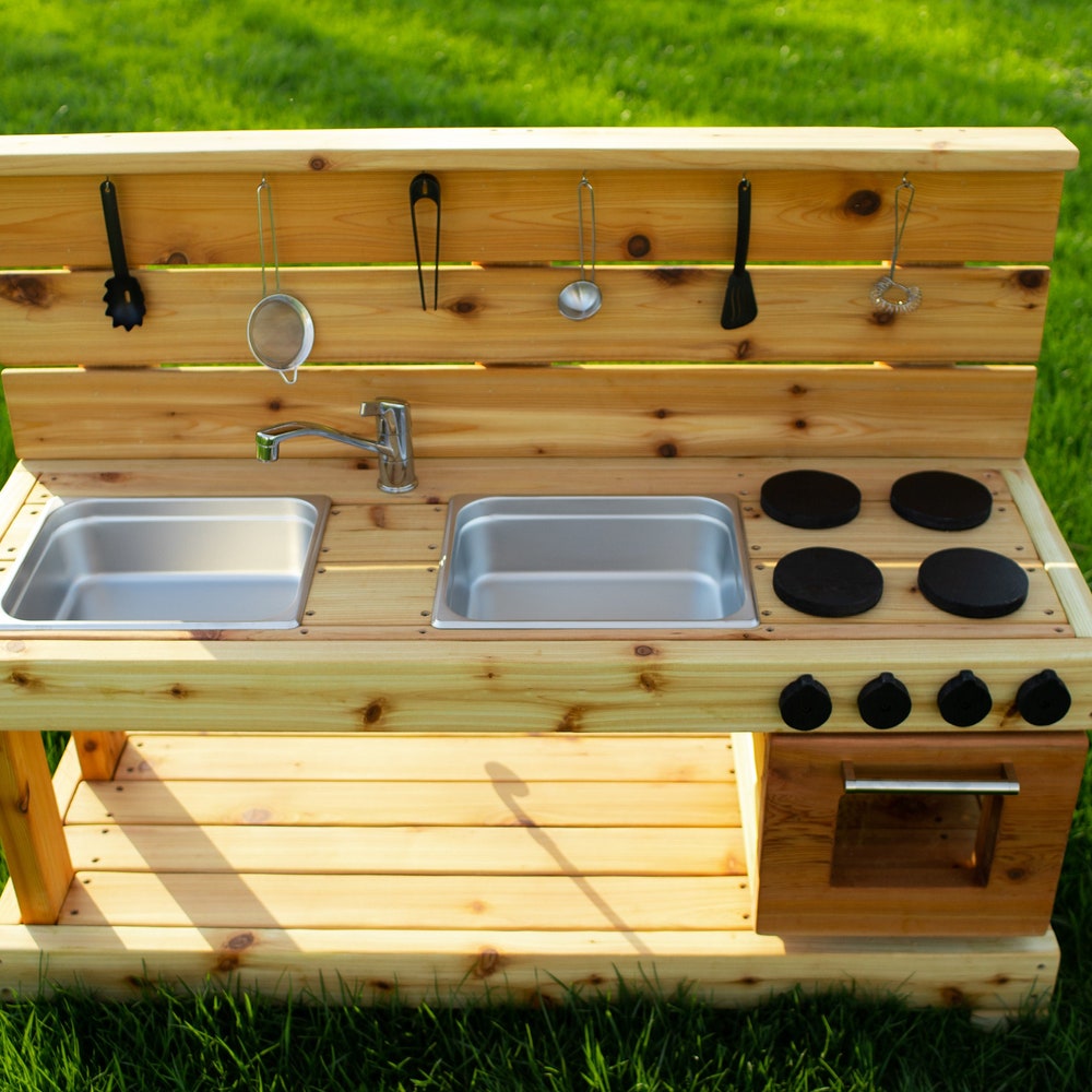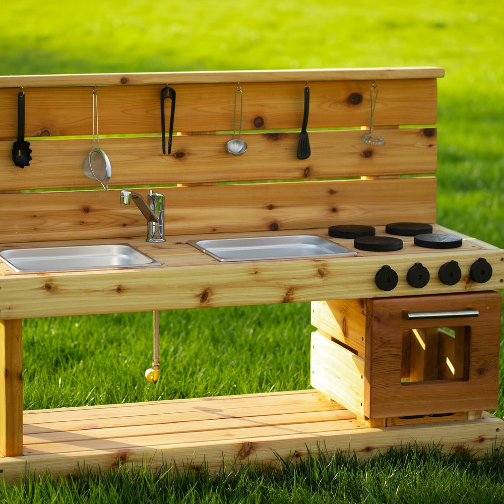 Working Sink Mud Kitchen with Oven | Cedar Play Kitchen for Toddlers and Kids | Handmade | Sensory Play | Sand and Water Table | Montessori