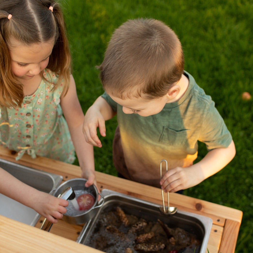 We love mud kitchens because children are free to get as messy as they want – since they are outdoors of course! Sensory, messy and pretend play is SO good for children. There are endless possibilities with these lovely mud kitchens as they promote open-ended play: mud soup, a pretend cafe, or filling the sinks with sensory items are just a few examples!
