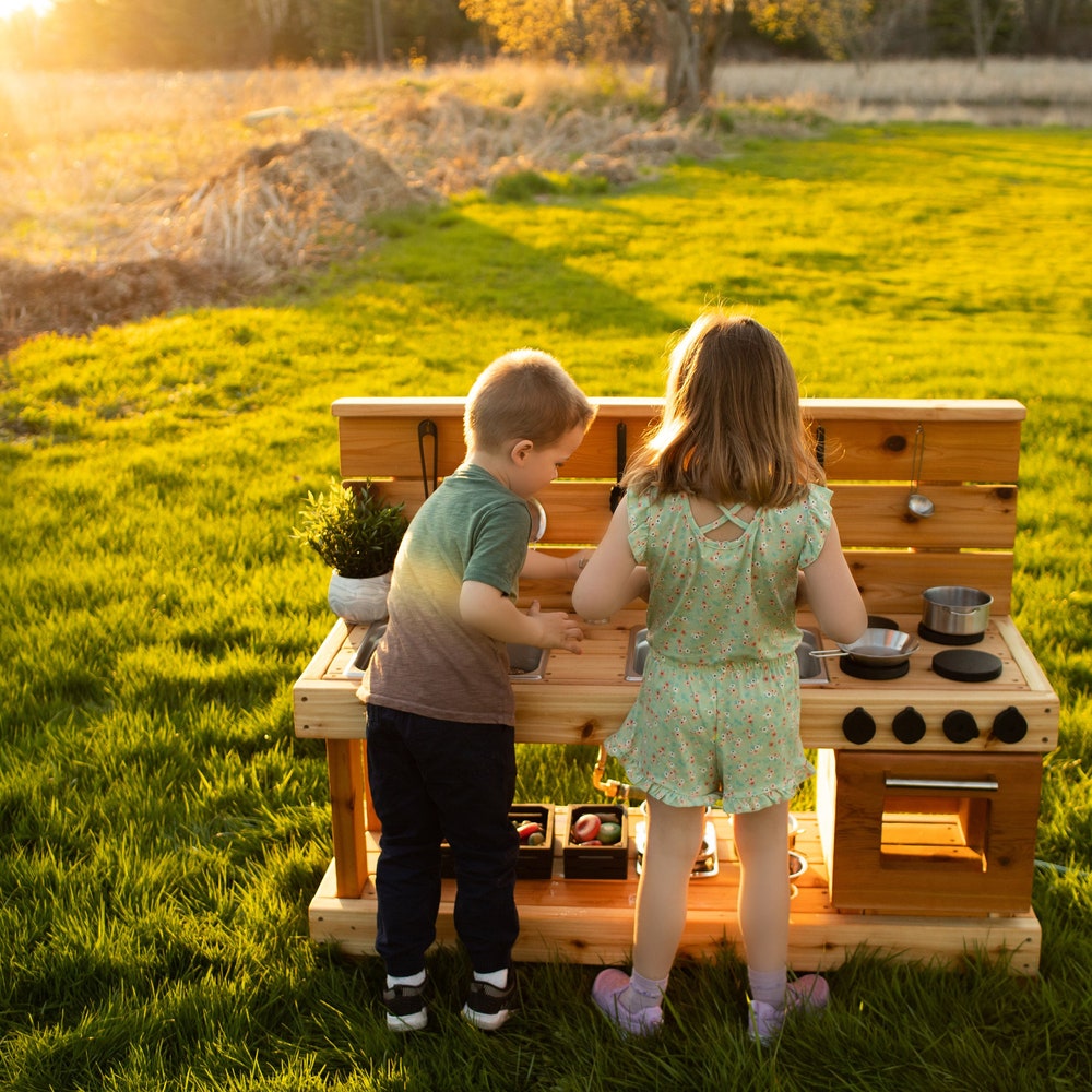 NEW: Add a drain to your mud kitchen! Option to add to one or both sinks. Comes with a sink stopper. -Made entirely of CEDAR wood, which withstands outdoor elements in both its natural state and with finish. Cedar far outlasts pine when left outdoors and is naturally rot and insect resistant.-Comes with an oven […]