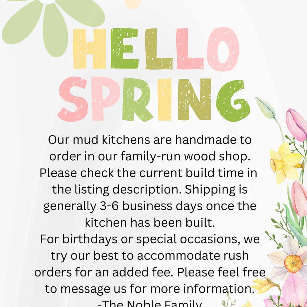 TALLER KITCHEN: Have older kids and want an even taller mud kitchen? Check out our custom feet add on here: https://www.etsy.com/listing/1219141728/taller-mud-kitchen-add-on-for-our-2-sink?click_key=8f45ee0c87df2848bb0b533dfbf059f35c332594%3A1219141728&click_sum=f8fb1e0f&ref=shop_home_active_1&frs=1&sts=1