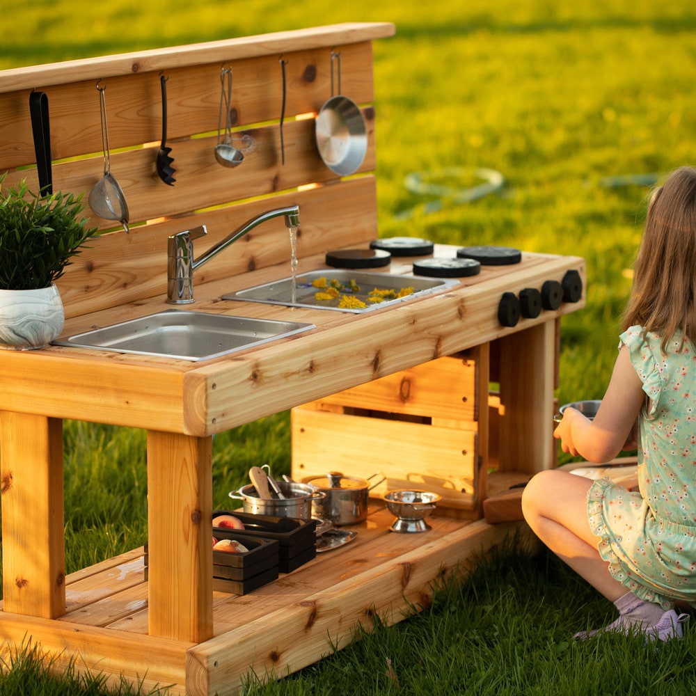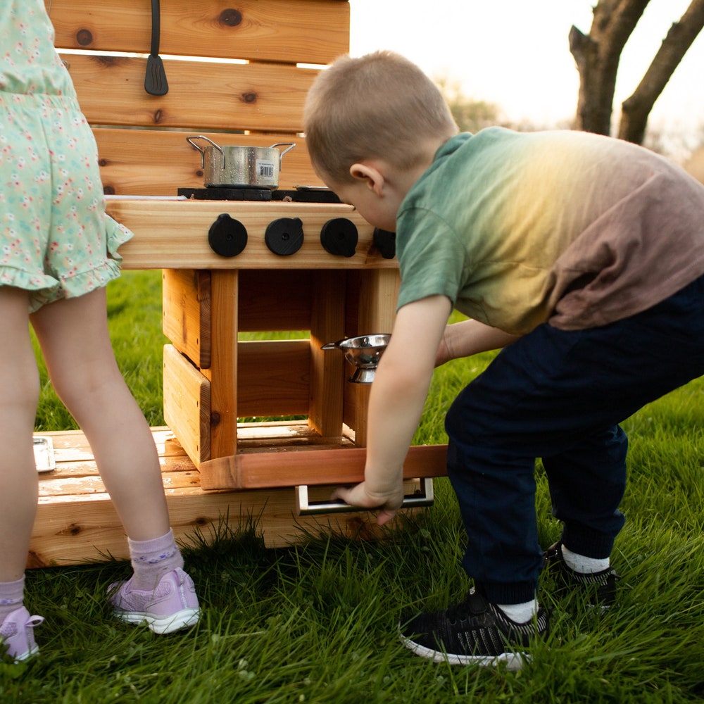Working Sink Mud Kitchen with Oven | Cedar Play Kitchen for Toddlers and Kids | Handmade | Sensory Play | Sand and Water Table | Montessori